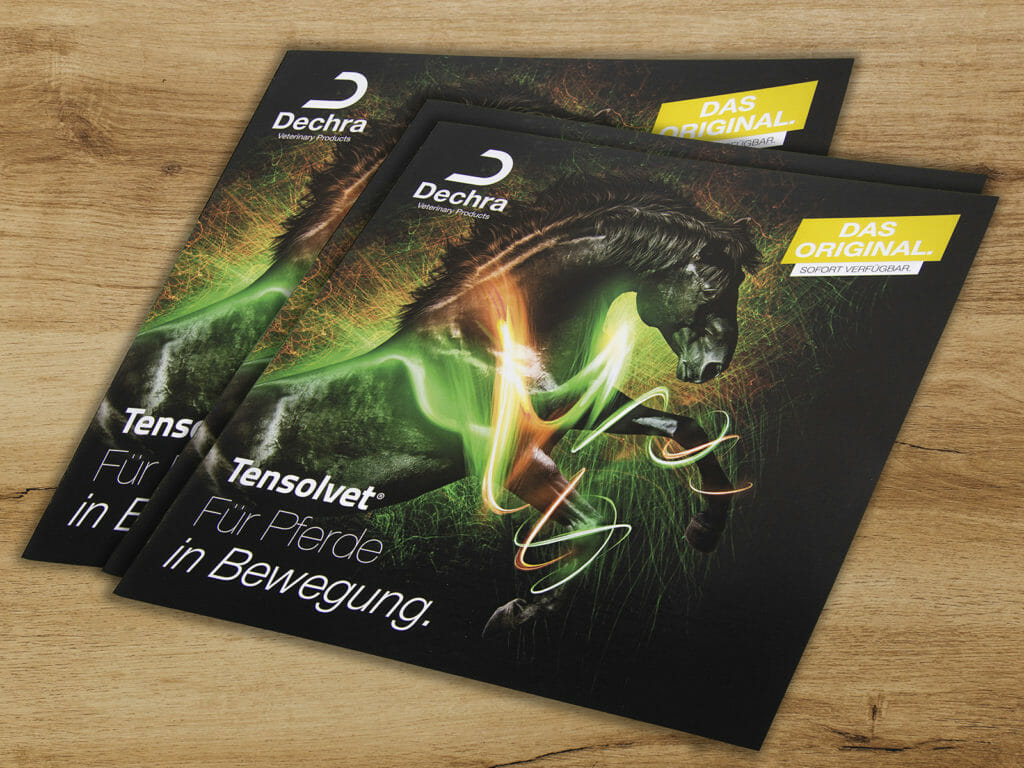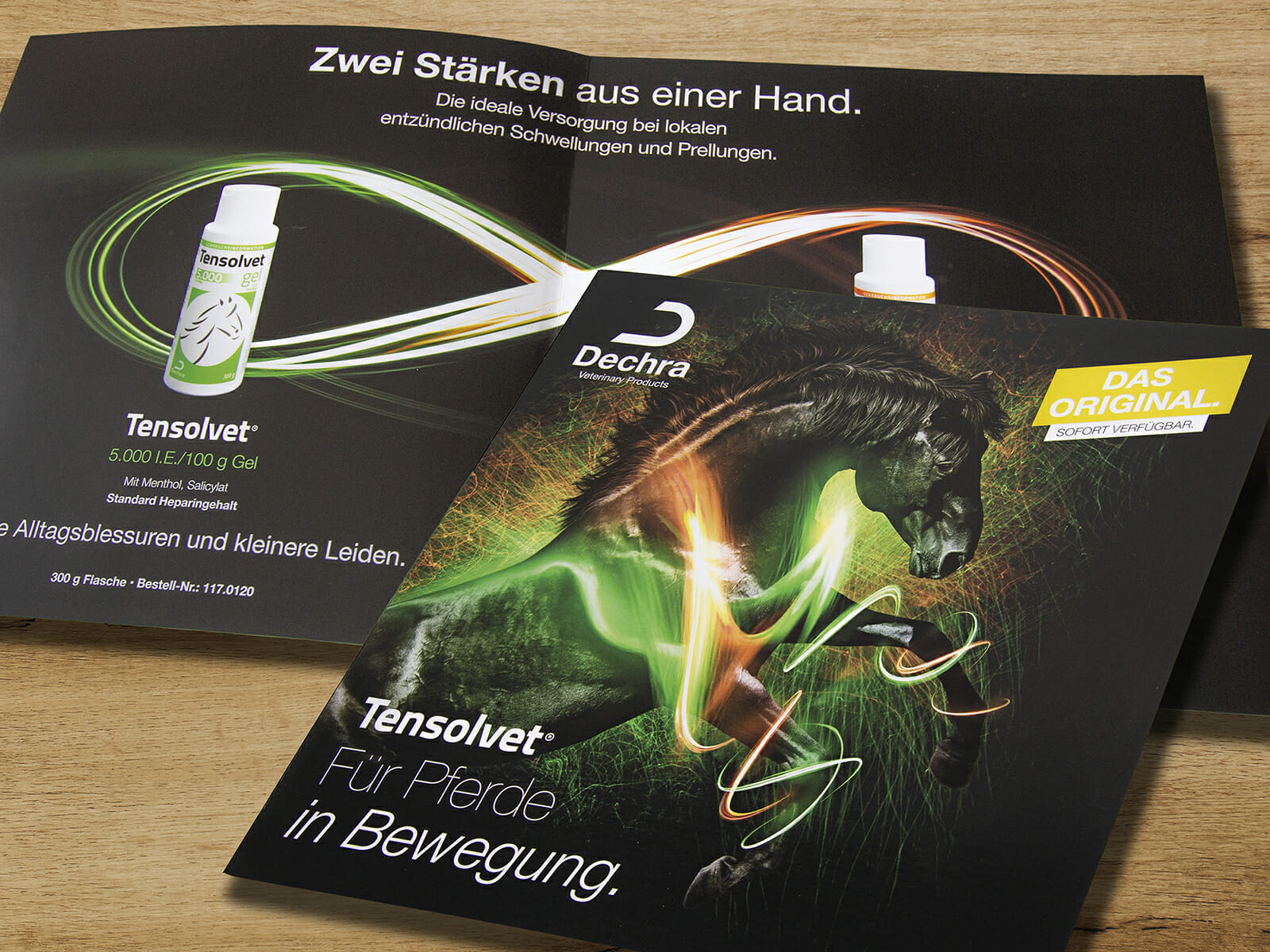 Zum Relaunch des Produktes Tensolvet wünschte sich der Kunde Dechra Veterinary Products aus Aulendorf für die Kommunikation mit Geschäftskunden ein Hauptkampagnenbild (Keyvisual). Dieses sollte sowohl für den Einsatz als Anzeige on- und offline, als auch als Umschlag für weiterführende Informationsmaterialien dienen und eine hohe Wiedererkennung gewährleisten.