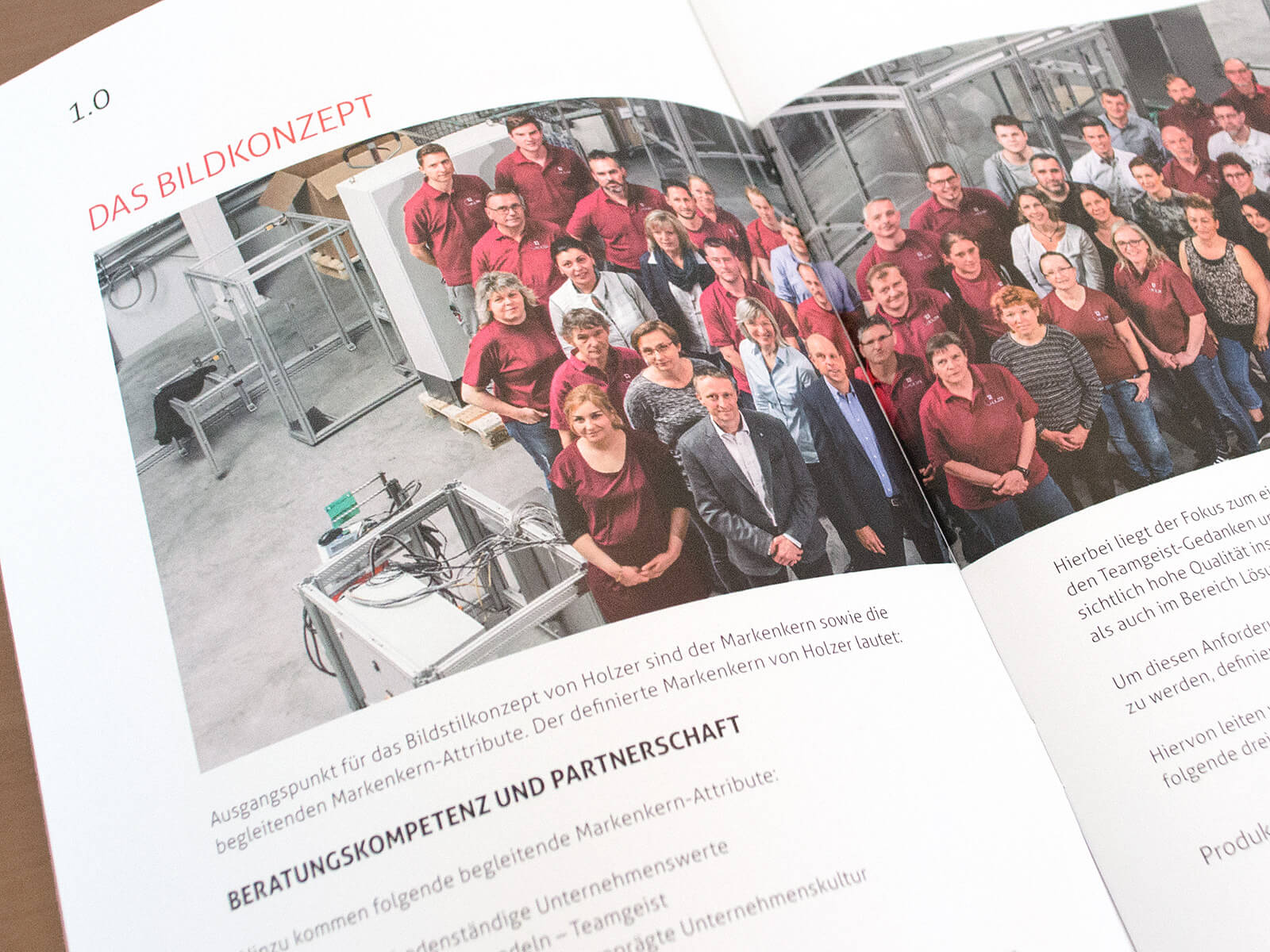 Im Motivbereich „Bildstil Menschen“ gilt es, die Markenkernattribute „Soziales Denken und Handeln“ sowie „Teamgeist“ zu visualisieren: Folglich rücken hier die Themen „Interaktion“ sowie „zwischenmenschliche Freundlichkeit und Sympathie“ in den Fokus. Da bei HOLZER Authentizität in jeder Hinsicht großgeschrieben wird, haben wir dringend angeraten von sogenannten Stockarchiv-Fotografien Abstand zu nehmen. Denn der hier überwiegend zu findende künstlich-überhöhte Gesichtsausdruck der abgebildeten Personen würde dem Credo der „Authentizität“ diametral entgegenlaufen.