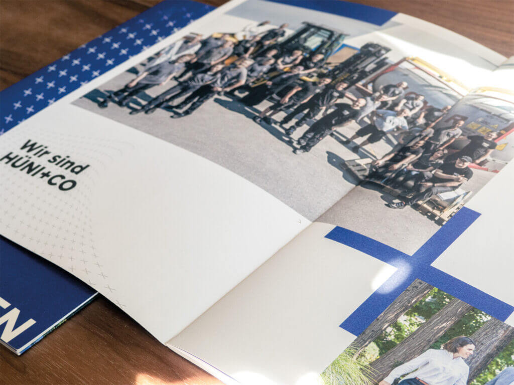 Mit dieser fundierten Vorgehensweise – ausgehend von der Markenkernentwicklung und gefolgt von der Transformation – haben wir eine ideale Grundlage für die Entwicklung von Medien aller Art geschaffen. Dieser im Vorfeld erarbeitete rote Faden gestattet es uns, die zentralen Werte in der neuen Unternehmensbroschüre authentisch in Bild und Text lebendig werden zu lassen – und so allen Kunden einen durch und durch authentischen Einblick in die Welt von HÜNI+CO mit all ihren Facetten, ihrem Können und Leistungsvermögen sowie ihrer Philosophie zu bieten.