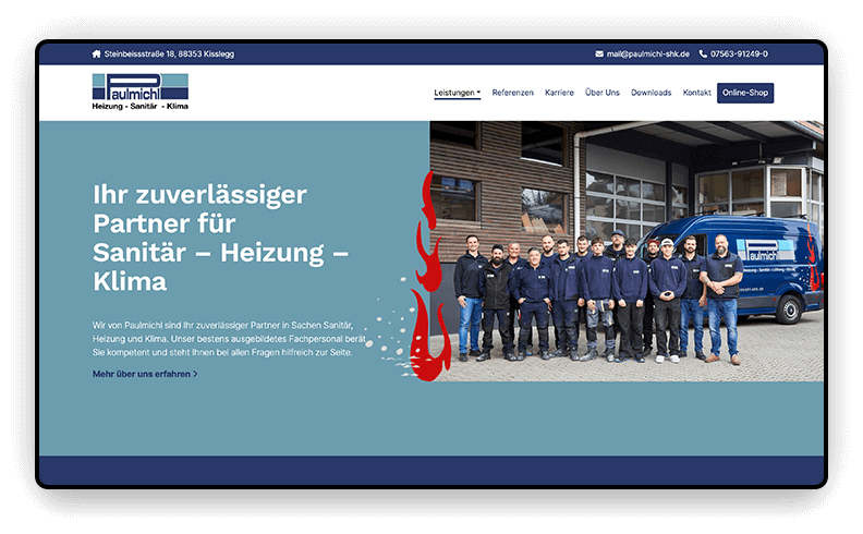 Paulmichl ist seit 1989 ein regionaler Partner für Sanitär, Heizung und Klima im Raum Allgäu-Bodensee-Oberschwaben. Mit den insgesamt 16 Mitarbeitern plant, baut und wartet Paulmichl jegliche Sanitärobjekte, Heizungssysteme, Klima- und Lüftungsanlagen und thermische Solaranlagen.