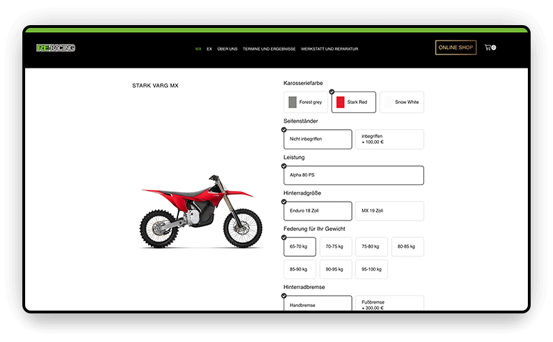 Für unseren Kunden Re-Racing haben wir einen Onlineshop realisiert, der nicht nur Produkte verkauft, sondern ein echtes Erlebnis bietet: